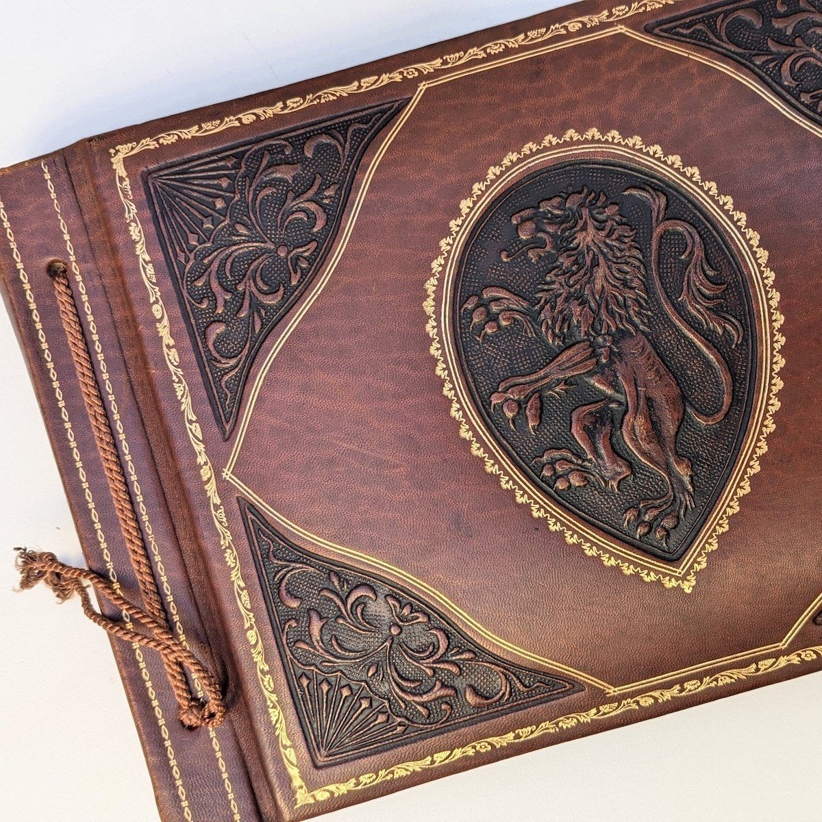 Álbum fotos cuero escudo león