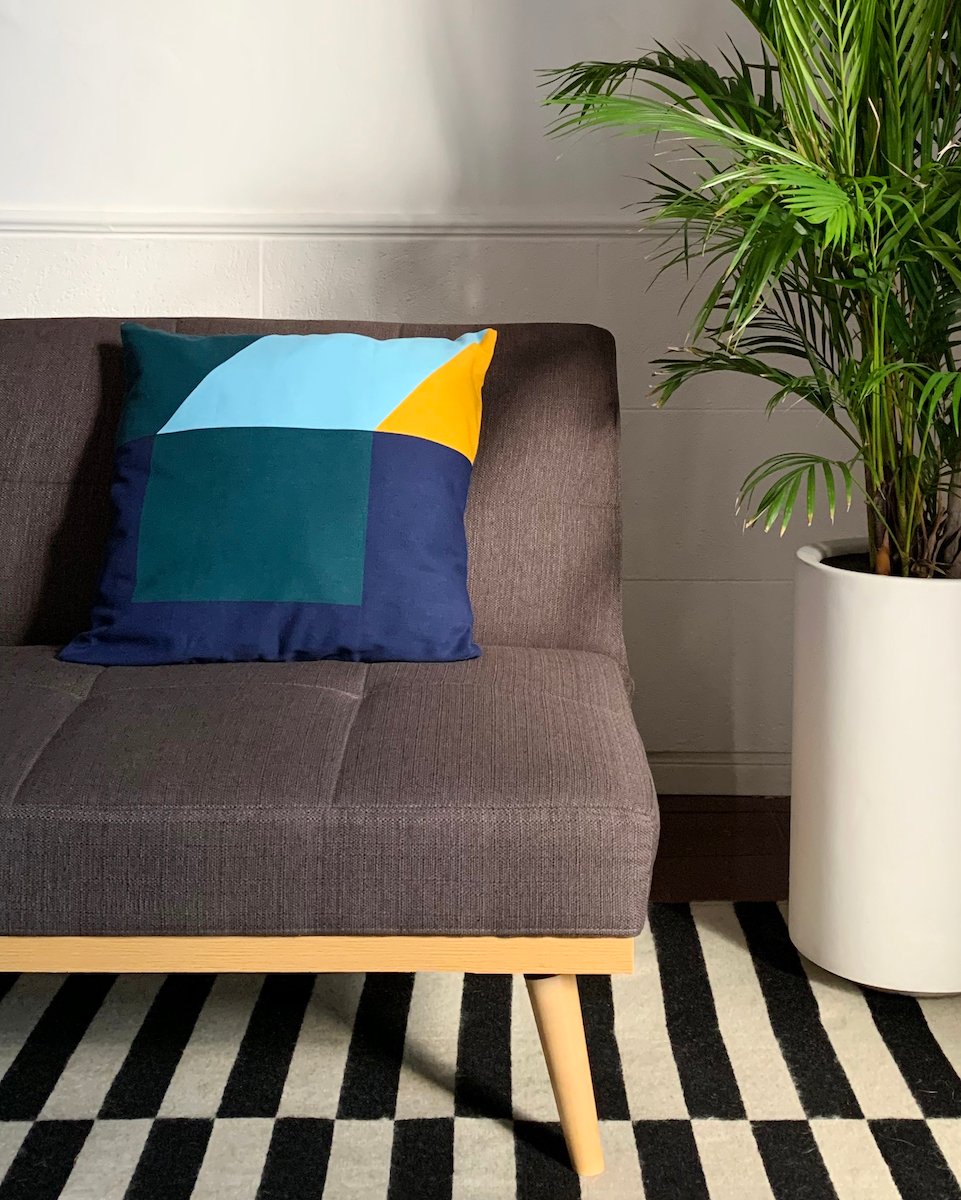 Almohadones en paleta de azules