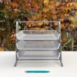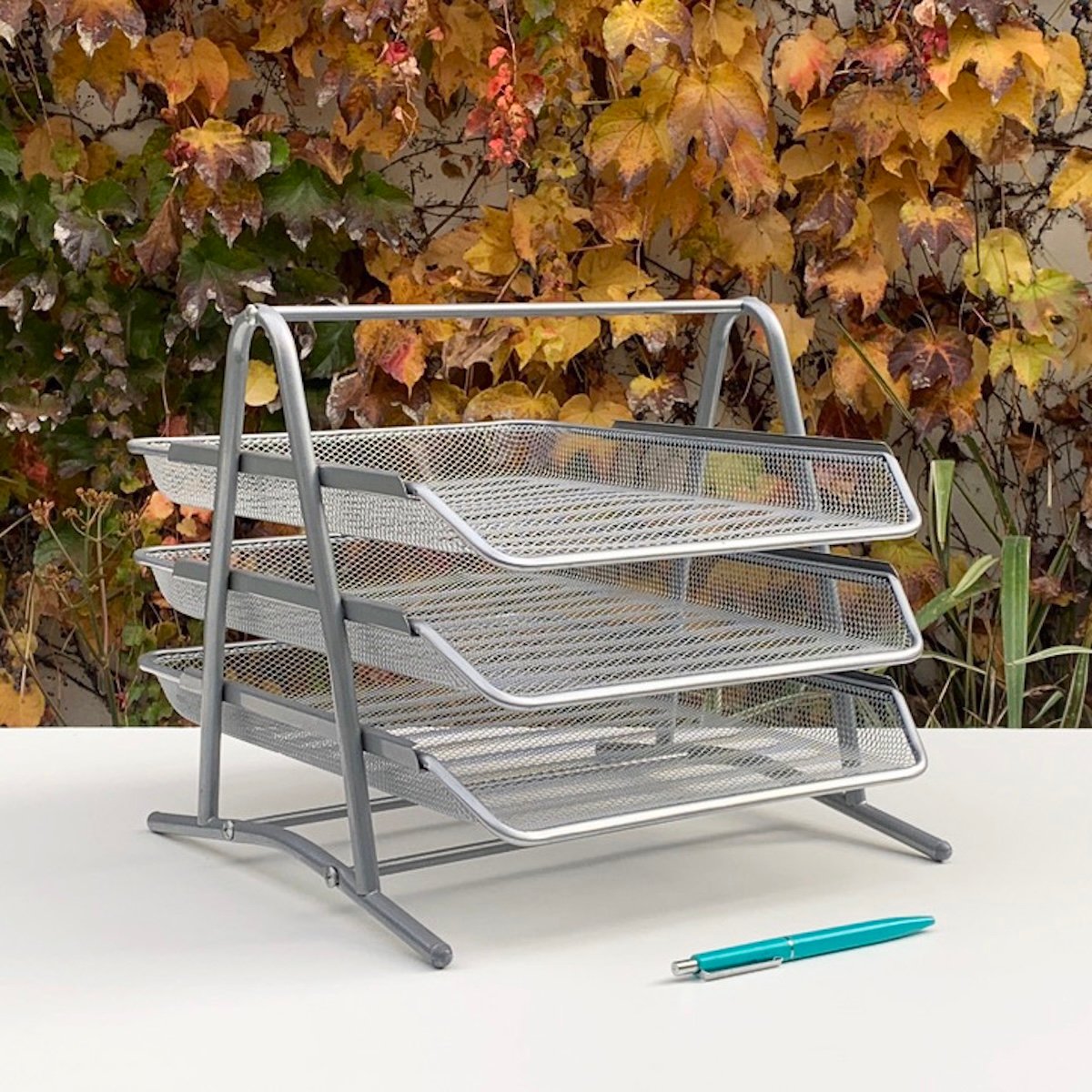 Bandeja papelera metálica enrejada plateada 3 niveles