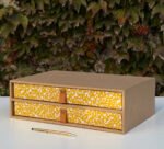 Cajonera módulo organizador escritorio madera estampa amarilla