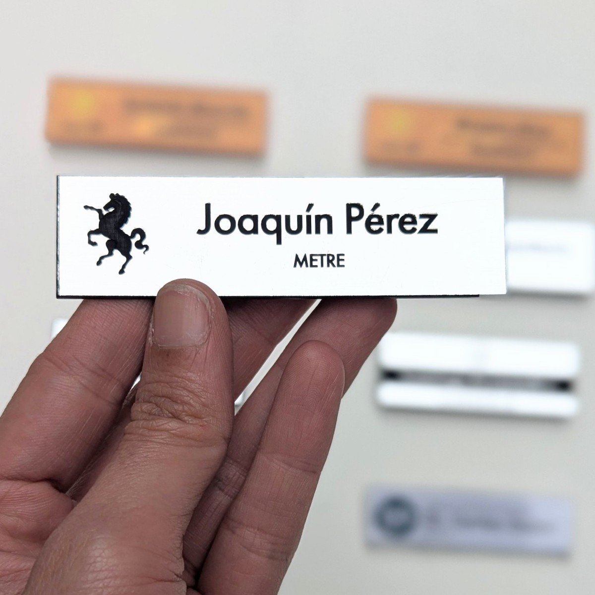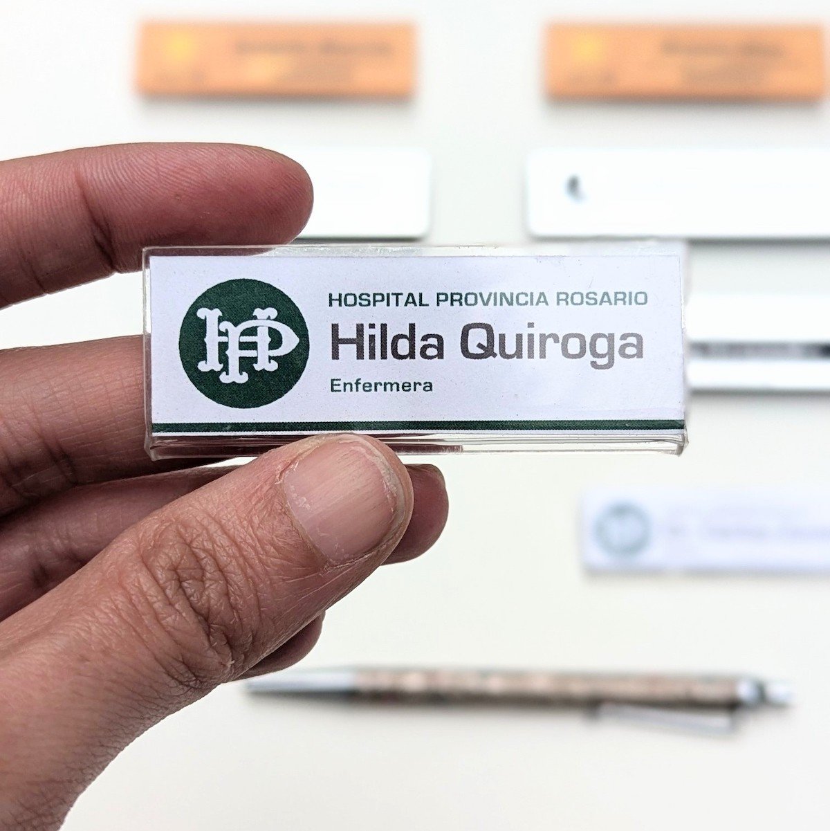 Podés intervenir los gafetes con tu propia gráfica, en papel común o adhesiva.