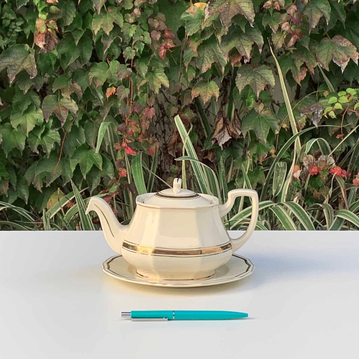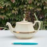 Tetera blanca detalles dorados